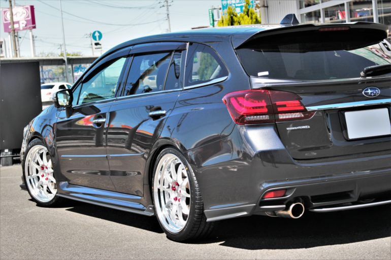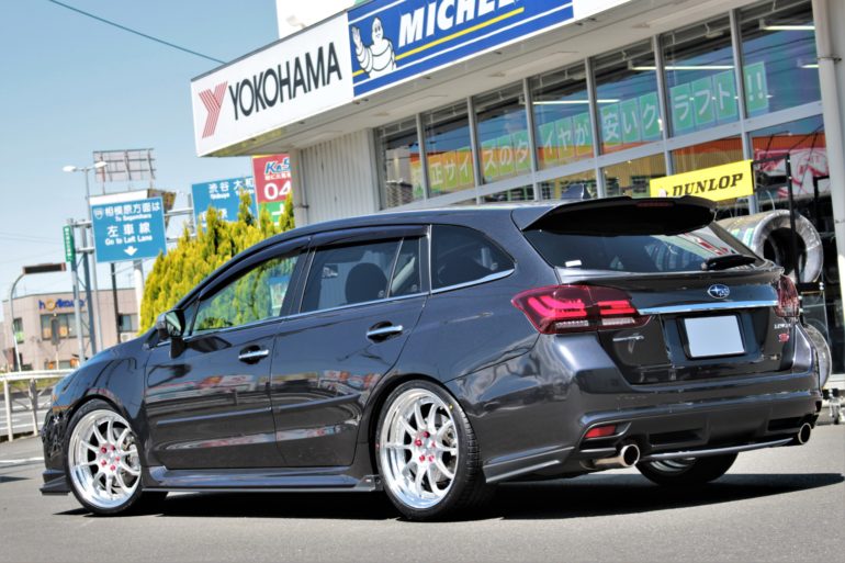 レヴォーグとは車高を下げる事でナチュラルにキャンバーが付くクルマなのでそのキャンバーがついた分リムを深く取る事が出来た訳です!!