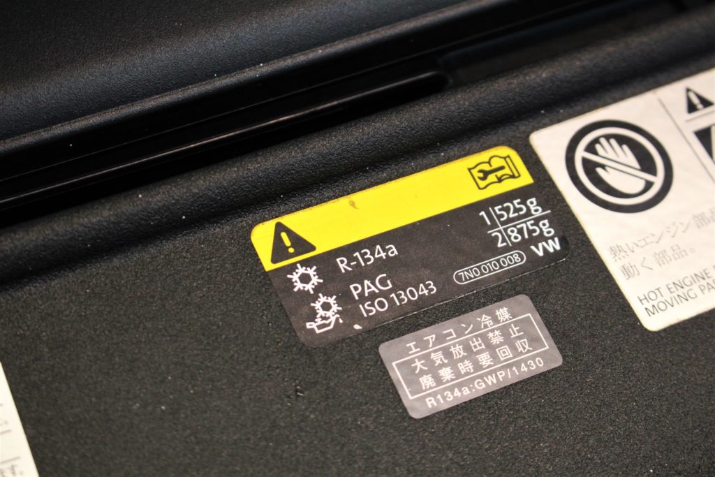 ボンネットを開けると対応冷媒が記載されているはずですので、ご自身の愛車も