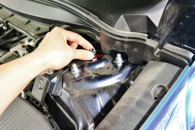 ボンネットを開けて調整ダイヤルをS方向(ソフト)かH方向(ハード)へ回すだけ。
