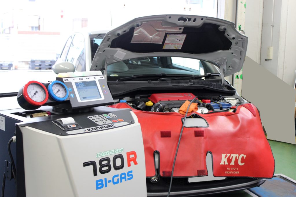 愛車のエアコン、しっかり効いていますか?エアコンガスクリーニングはメンテナンスにも最適ですよ!!