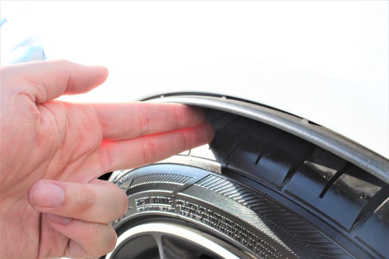 フロントのフェンダーとタイヤとのクリアランスはこのような仕上がりに。