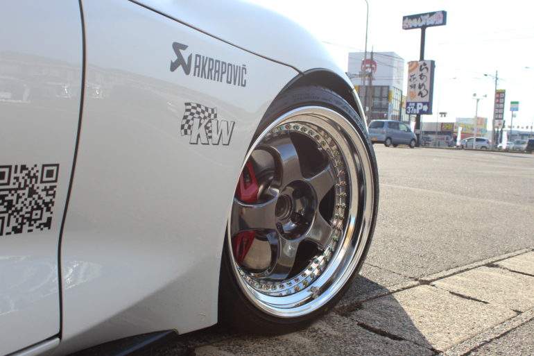 お世話になります。 クラフト知立店の河北です。     さぁ、皆様お待ちかねのスープラカスタムプランSTAGE.11後編です。 スープラカスタムプランのバックナンバーはコチラから STAGE.1『スペーサーでツライチに』 STAGE.2『ダウンサスでローダウン』 STAGE.3『マフラーでカッコよく迫力のサウンドを』 STAGE.4『パワーブレース装着でフロント剛性をアップ』 STAGE.5『パワーブレース装着でリア剛性をアップ』 STAGE.6『パワーブレース装着でリア剛性をアップⅡ』 STAGE.7『ホイール交換でイメージチェンジ 前編』 STAGE.7『ホイール交換でイメージチェンジ 後編』 STAGE.8.『スロットルコントローラー装着でアクセルレスポンス大幅改善』 STAGE9.『車高調装着でハンドリング性能をアップ 前編』 STAGE.9「車高調装着でハンドリング性能をアップ 後編」 STAGE.10『スタビライザー装着でロールを抑えハンドリング性能をアップ』 STAGE.11『ホイールチェンジで極太タイヤをスープラに装着 前編』     前回のブログでご紹介させていただきましたタイヤサイズはコチラ   極太 フロント 275   純正 フロント 255 極太  リア  295   純正 リア   275   ここまで太くしました。 295を装着できるこのクラスの国産車はなかなか存在しません。     現状装着しているホイール。 RAYS VOLKRACING G025 と比べると全く別ジャンルのアルミホイールなのが見てわかります。   もちろんタイヤが太いということはホイールも極太。 ムフフなスペシャルなセッティングです。 マイスターS1を装着。   いざ装着へ ブレーキもギリギリすぎるクリアランスでクリア 計算通り。 念のため現車でもチェックしました。     ステップリムのS1は18インチディスク。 18インチとなればRZのブレーキはギリギリのマッチングです。     WHEEL:WORK MAISTER S1 3P SIZE:19 COLOR:OPTION COLOR TIRE:FALKEN FK510     アメリカで出てきそうな仕様でしょ? カッコイイ♪ RZのブレーキキャリパーが映える5本スポークモデル。     このムチムチのセッティングだとエアロやハネが欲しくなりますね。   そして、今後少しずつではありますが車高やサスペンションの セッティングを煮詰めなおしていきたいと思います。   現状試乗した感じは重くなった分初速は遅れた感じは出てしまいますが、 高速走行での安定感は抜群。 スープラのハイパワーを支えるにはよりに太いタイヤを装着しても良いですね♪ トラクションのかかりもグッと感じることが出来、パワー伝達時の安心感がります。     このリアからのずっしり感。 このずっしり重厚感を狙ったのが今回のカスタム。 295は太い!!     我慢できずにお話しますが、 実はリアのホイールサイズですが極太11Jデス(笑) 実車計測とセッティングから成る 極太タイヤ295幅と極太ホイール11Jの組み合わせです。   以前のボルクはスペーサーを装着しツラだしを行いました。 が今回3ピースホイールと言う事でスペーサーを排除。   リム幅 インセット でツライチセッティングへ。     太陽光が当たりチタンコートピアスがいい感じに。     ホイールディスクカラー アウターリムカラー インナーリムカラー ピアスボルトのカラー サイズオーダー   個性を出せる。 これが3ピースホイールの特権です。 そして3ピースホイールは高級感があります。     多くの方が憧れを持つ深リムホイール。 GRスープラは深リムが装着できる魅力のフェンダーハウスの広さがあります。 せっかく深リム履けるなら深リムホイール装着したいですよね?!     なぜWORKの3ピースホイールは高級品といわれるのか?   もちろん100%ジャパンメイド。 オートメーション化されたラインでの機械による製造ではなく、 職人が手で組み付け作り上げる WORK 3ピースホイールです。 部材、素材にも職人がこだわって品質管理を行っています。 精度はとても高く高次元。   リムのつなぎ目もシームレスでり真円度がとても高いんです。 以外に知られていませんがホイールの真円って本当に高い技術が必要なんですよ♪     機能を追及した究極のカタチ。 WORK DTM STYLEの具現化美しさの根源は機能美にあり、 他の追随を許さぬ伝統を持つ真のスポーツホイール を求める方にピッタリの3ピースホイール。 それが世界のWORK WHEELです。   次回のカスタムをお楽しみに(^_-)-☆ GRスープラはクラフト知立店に展示中です。   ***Craft Event Information*** A90 DB型スープラ情報は上のバナーをクリック!
