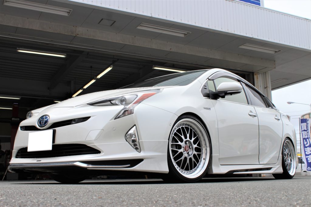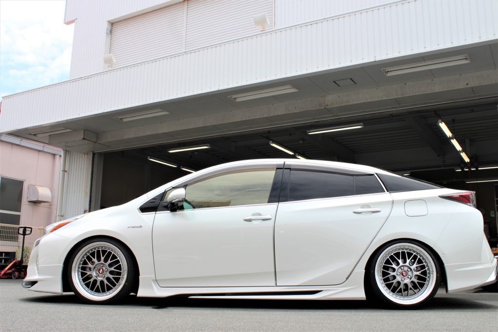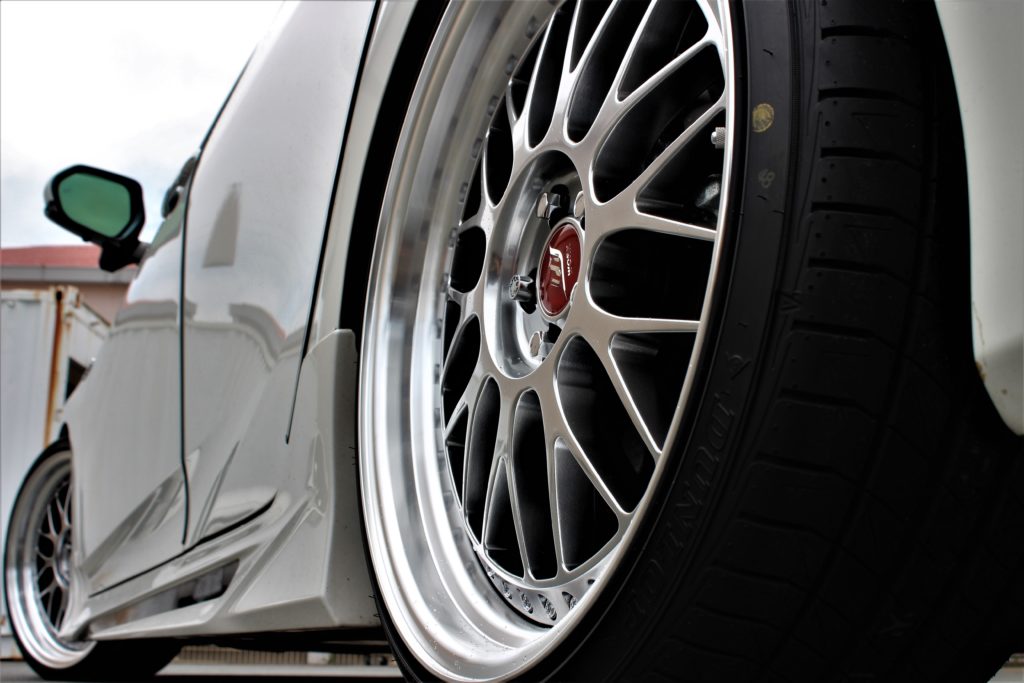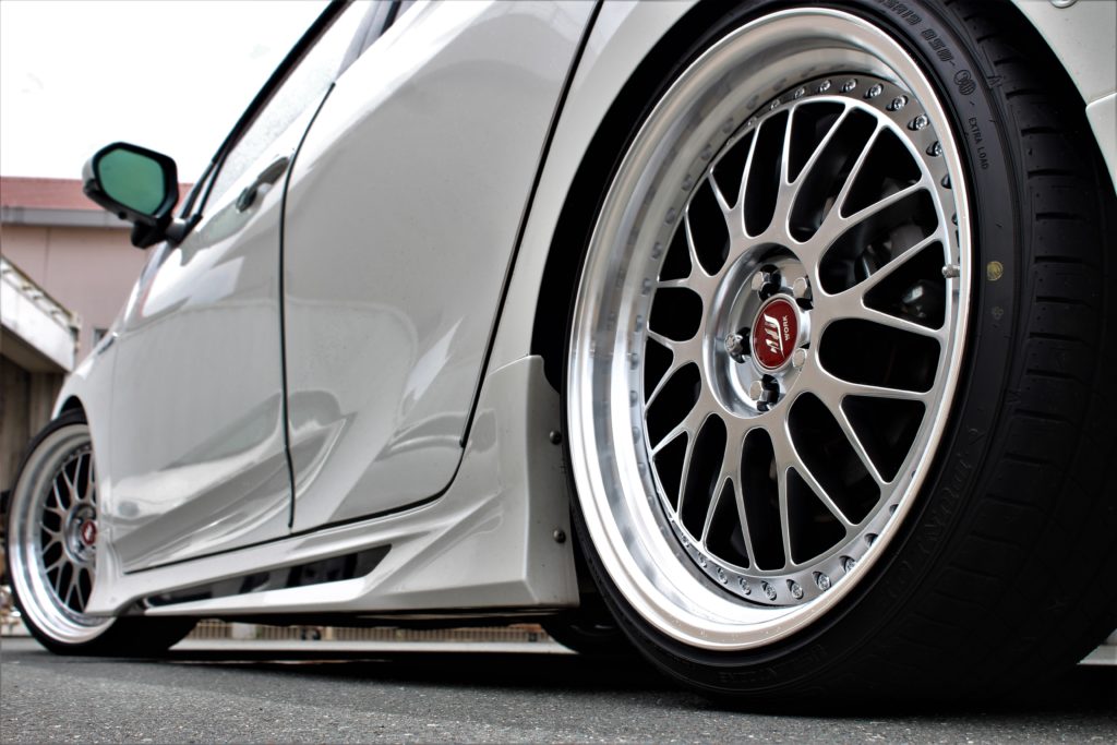 どうしてもエアロが付いていると、車高は控えめになりがちですがココまで攻め込んで