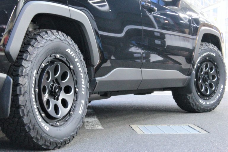 タイヤは定番のグッドリッチ・オールテレーンをホワイトレター仕様で組み全体の黒っぽさの中にワンポイントアクセントを付けました!!