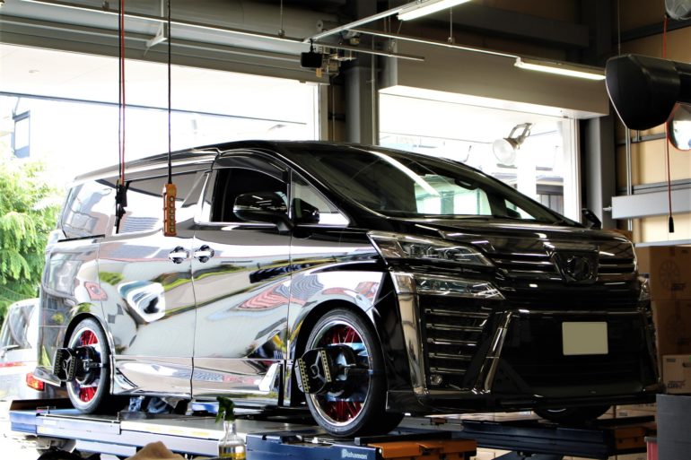 TRDフルエアロ装着のヴェルファイアを車高調でほんのりローダウン!