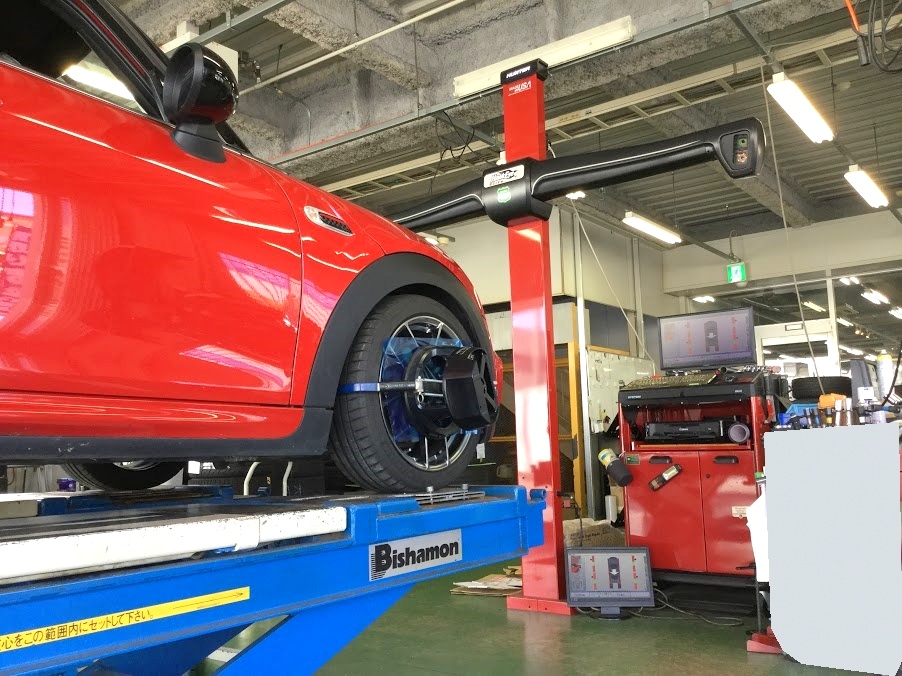 車高の微調整後はアライメントを施工です。