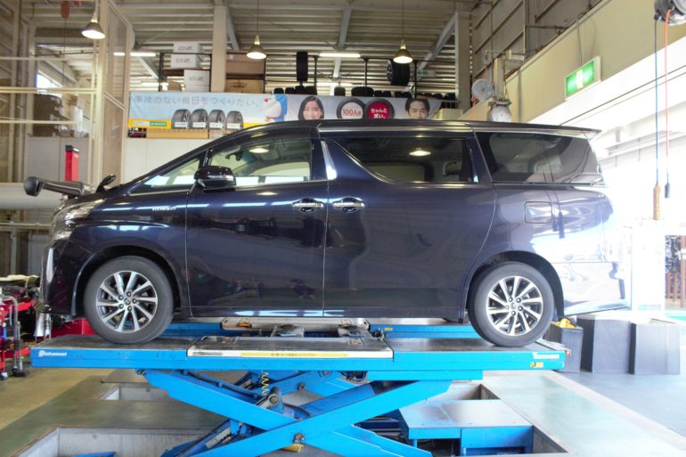 ハイブリッドのアルヴェルはガソリン車に比べ腰高いんです・・・