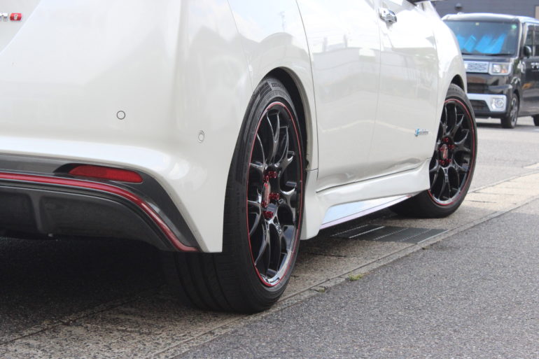 今回はリーフニスモにレッドラインが入っただ大人気ホイール「RMP R27」と