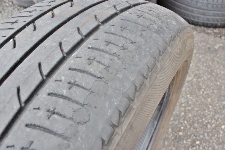 ①タイヤの経年劣化によるひび割れがあり、そのまま使用していた