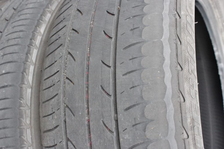 輸入車、ミニバンのお車にありがちのアウトサイド部の摩耗。