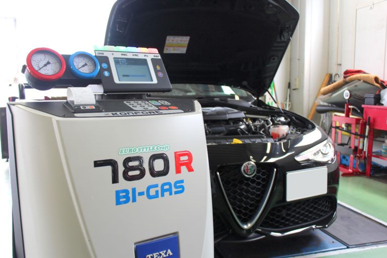 お次はアルファロメオ159のエアコンガスクリーニングを施工します!