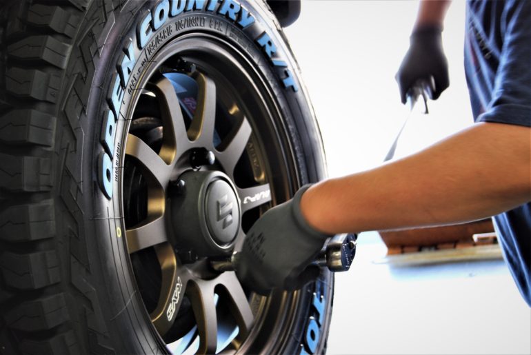 ブロンズカラーで足元を引き締めホワイトレタータイヤでOFF感をさらにプラス