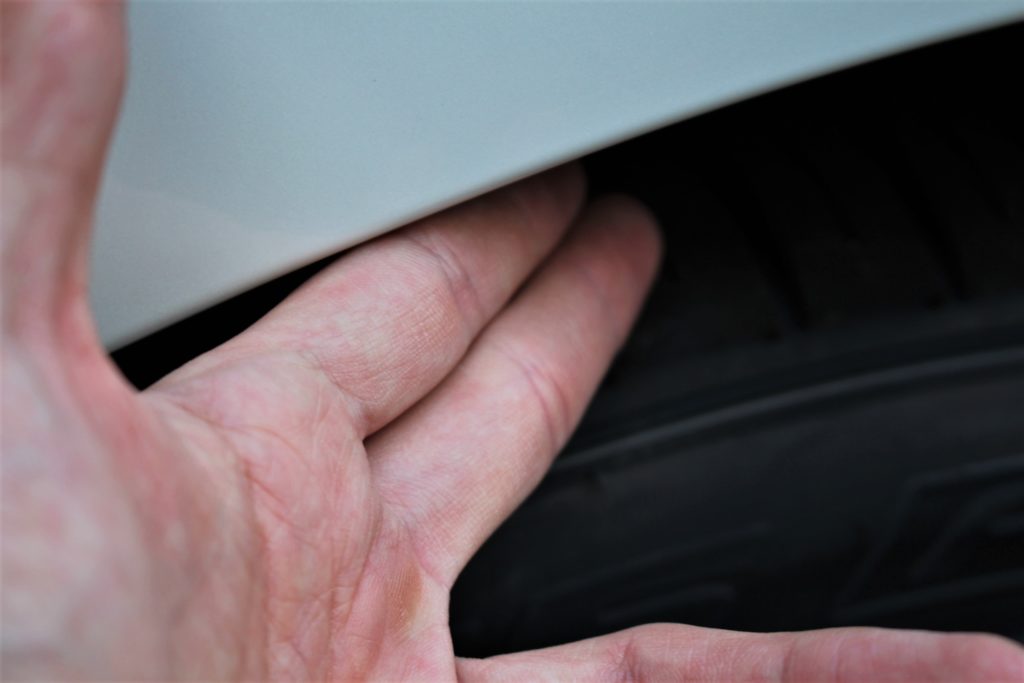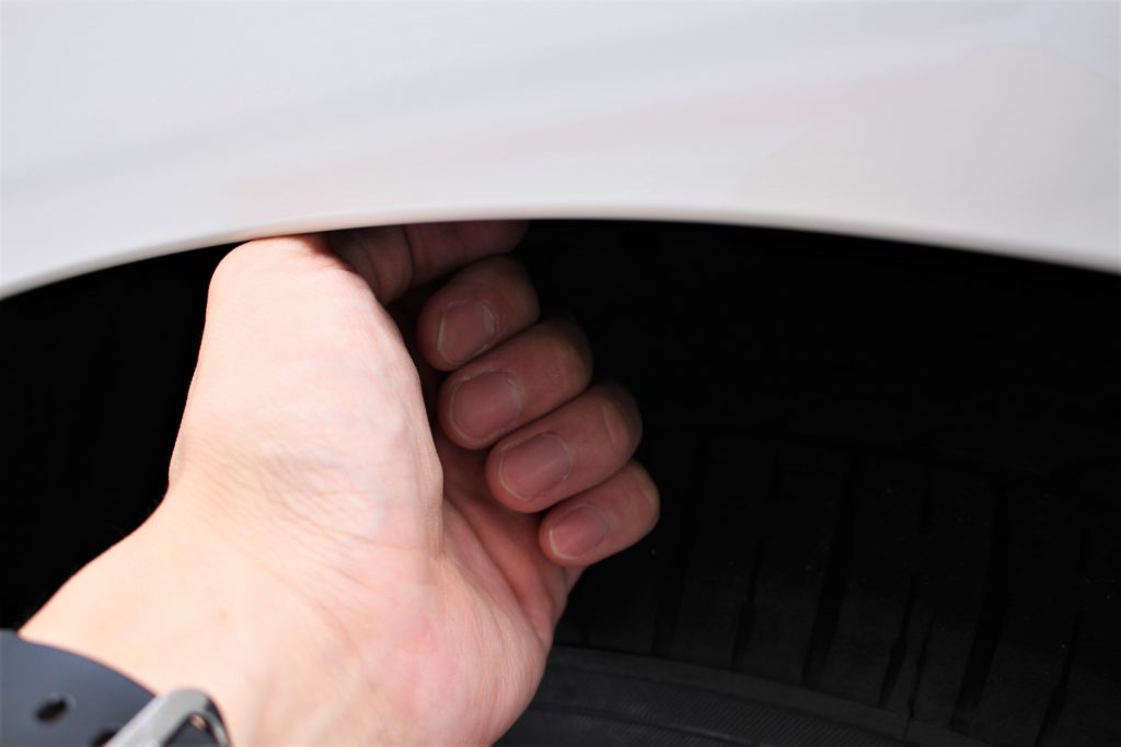 ご入庫時に拳一個入っていたフェンダークリアランスから指2本分までにローダウン。