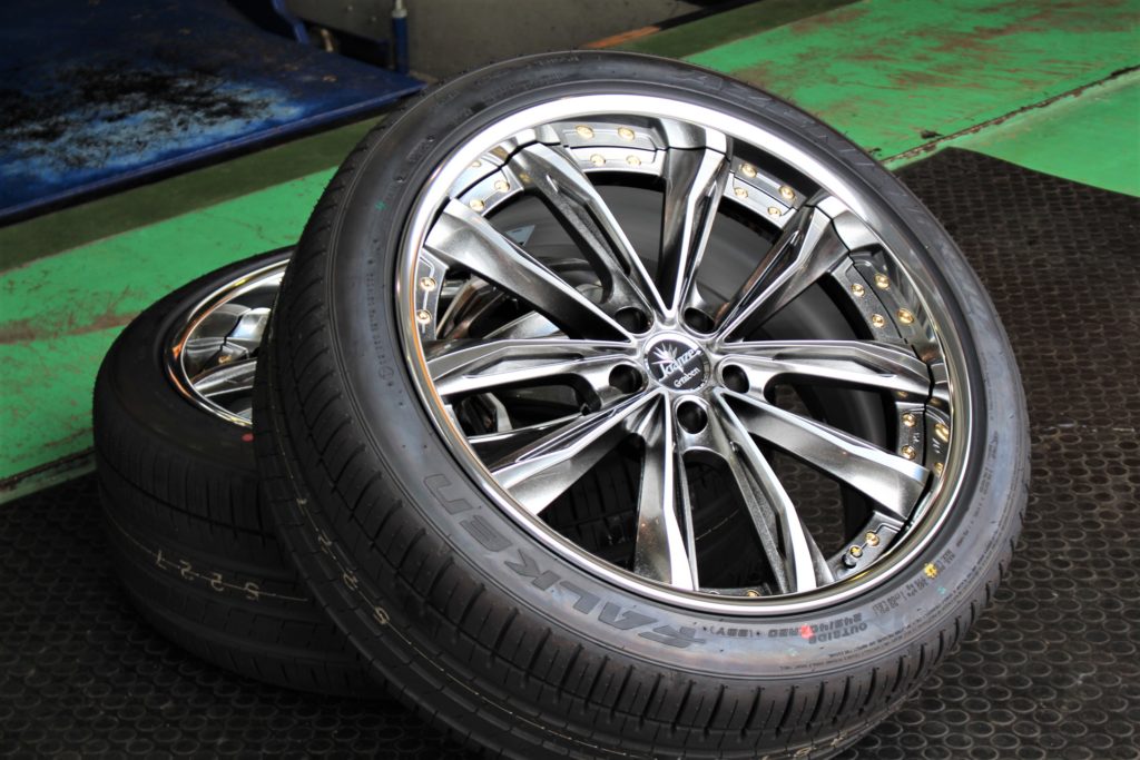 大野課長の手により足回り作業が進められる中、NEWタイヤ&ホイールを準備。