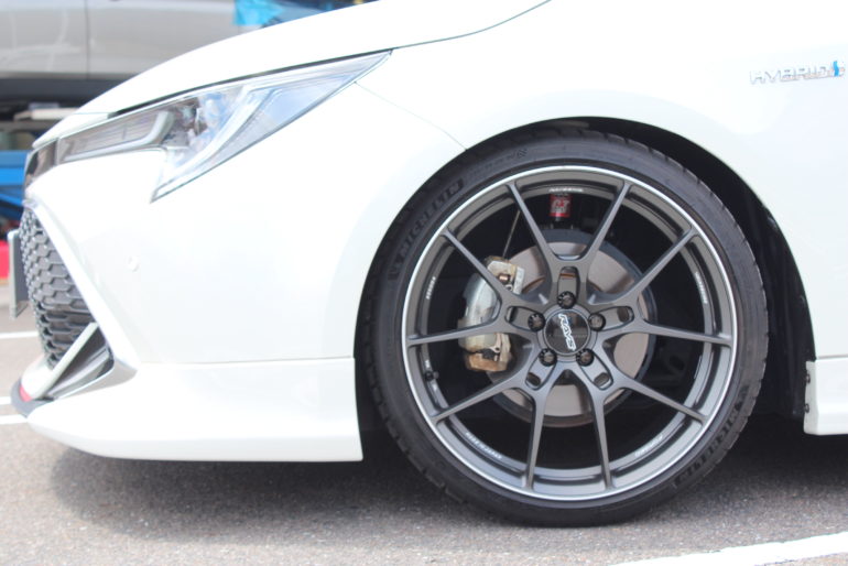 G025のシャープなスポークが、エッジの効いたカローラスポーツに相性ばっちしです。