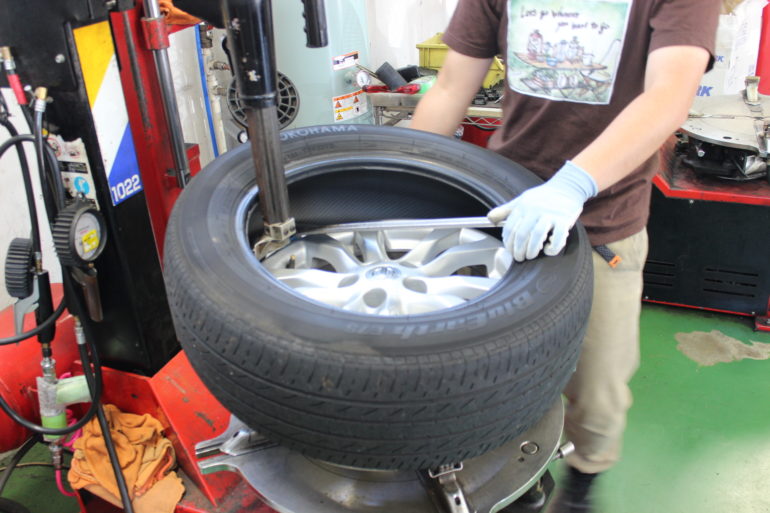 ホイールにキズを付けないように慎重にはめ替え作業を進めていきます。