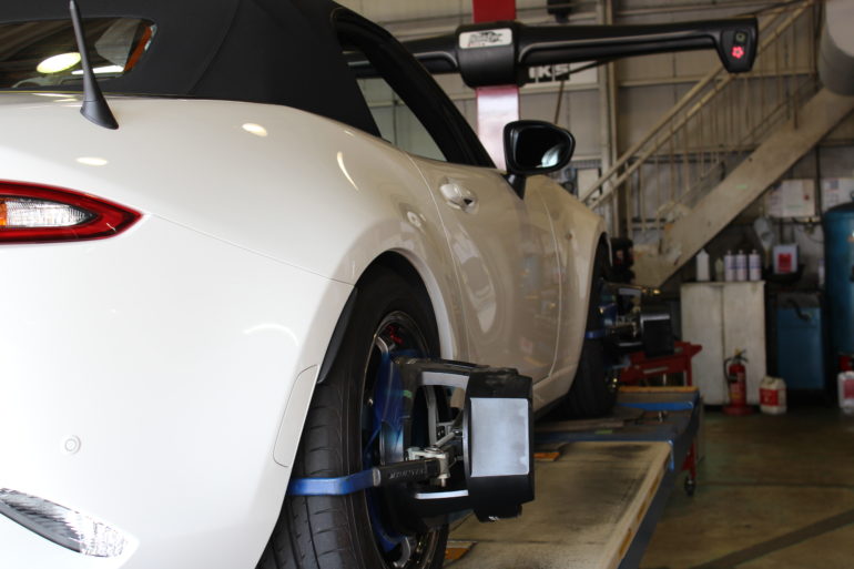 ロードスターはアライメント調整でキャンバーが触れます。