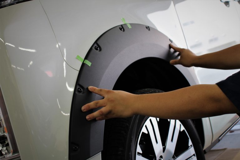 人気メニューのインチダウン+αフェンダーガーニッシュ取り付けでインパクト大な1台が完成です