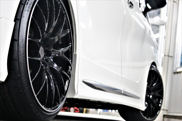 30アルファード・ヴェルファイアでツライチ仕様に仕上げるなら車高もしっかり下げた方がよりカッコ良くキマります。