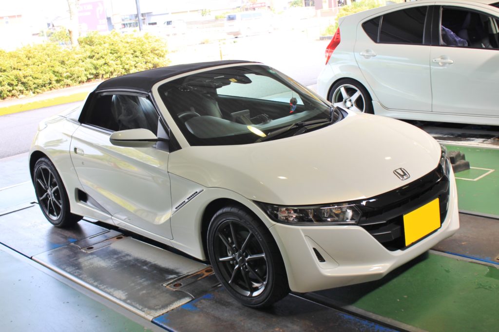 ■S660 をアシ・マフラーからカスタム。ALL HKSの拘り仕様。走りのエスロク極めれり!? 第△△次ウェーブ!? ここ最近、再びS660のご入庫率高めな当店。ライト寄りなカスタムご相談もあれば、 「△Jを履きたい!」等もう一段階踏み込んだ内容もいただいております。 本日のエスロクは「憧れの"アノ"ホイールを履きたい!」を目指してSTARTします。 ご入庫時点において、ENKEIホイールが装着されていますが、車高はノーマル。 現状のままでは、理想とするホイールサイズが入りません。。。(;^_^A ローダウン作業が必須となるワケですが、 サゲ幅、乗り味…etc「こーしたい」を実現すべく選ばれたアイテムがコチラ… ■HKS ハイパーマックスR 温度変化に強い高粘度のR専用オイルを採用することで、ハンドリングや収まりの良さを実現。 また、スポーツ走行に最適な高強度線材を使用したR専用スプリングを搭載し、走り心地に磨きをかけた一品。 ・ストリート走行を中心に考えるなら"S"。 ・サーキット走行までも視野に入れ考えるなら"R"。 と自身が求める走行下に合わせた選択をしてみることがオススメです。 車種別専用アッパーマウントも付属。 S660の場合、前後キャンバー調整機構搭載のマウントが奢られますので、 アライメント調整時の調整幅に拡張性を持たせられるだけに期待大。 ※画像はリア用 S660用のマウントで特筆すべき点は、フロントアッパーマウント形状。 元々ショートストロークなS660。HKSではストローク量を稼ぐよう特殊設計されたマウントが奢られますので、 「乗り心地の良い車高調は?」と聞かれれば真っ先に思いつくのはHKS。ですかね? カップ部分の延長分が乗り心地に直結。HKS様独自の発想が効きます。 足回り作業が進む中、走りに直結するアイテムとしてもう一つご注文をいただきました。 それがコチラ… ■HKS Hi-Power SPEC L Ⅱ スポーツカーに純正サウンドは。。?と…お思いの方やはりやはりマフラー交換ですよね? パイプやサイレンサーにステンレス素材を使用し、部材ごとに薄肉の素材とすることで軽量化も追求した一品。 別途OPにてフィニッシャーカバーの交換にも対応しており、 リアビューのイメチェンを目指す際にもOKですね(*^^)v S660のマフラー交換と言えば、バンパー脱着が必須作業。 他車両に比べ作業工程多めなことと施工時間をいただきますことをご了承ください。 アシ・マフラー交換後は仕上げのアライメント作業へ。 フロント:トゥ・キャンバー リア:トゥ・キャンバー 前後左右合計8カ所を調整。 各部調整後ハンドルセンターを確認し完成です。 SUS:HKS ハイパーマックスR MUFFLER:HKS Hi-power SPEC LⅡ ベタッとロワード化。NEWセットを迎い入れる準備はOK。 あとは…NEWホイールが届くのを待つのみ。ですネ。 それまでは、NEWマフラーの音とパワー感を感じ取っていただき お楽しみいただければと思います。 この度のご用命誠にありがとうございました。 また、NEWセットのご用意が整い次第ご連絡をさせていただきますネ! エスロクのカスタムご相談も当店まで。