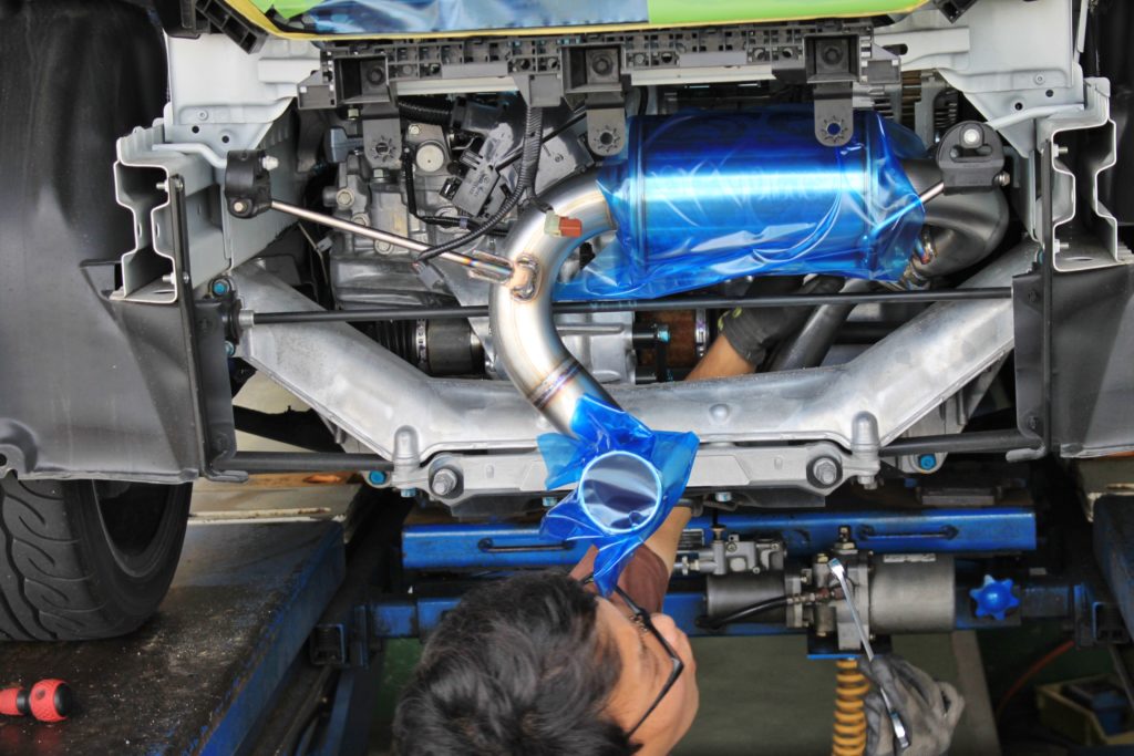 SPOON N1マフラーを取り付けます。