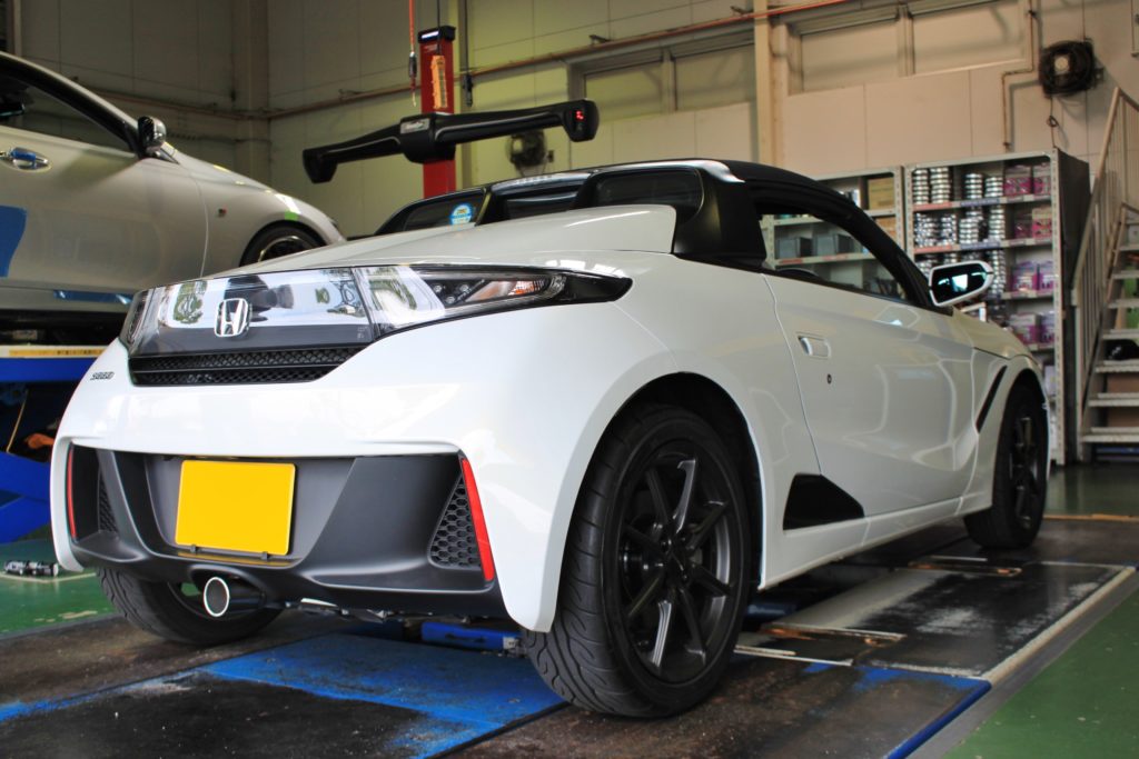 オプションカラーで魅せる!S660にエモーションZR10とスプーン N1マフラー、フレックスZでカスタム!