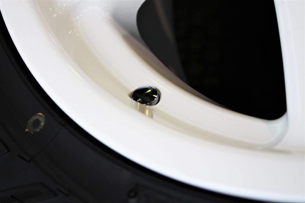 ボディルーフ部のホワイトとホイールカラーのパールホワイトを合わせた