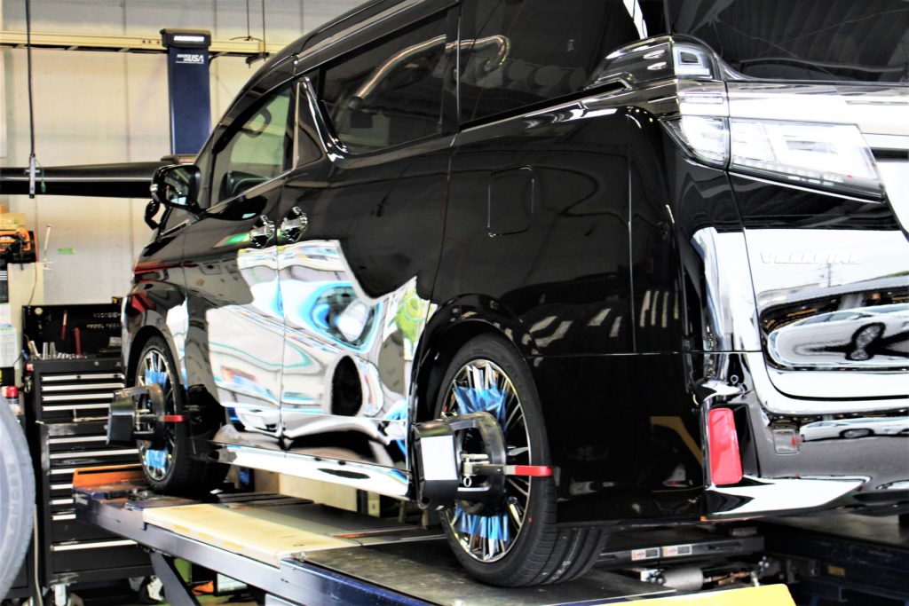 車高調・NEWタイヤ&ホイールを組込んだらアライメント作業へ。