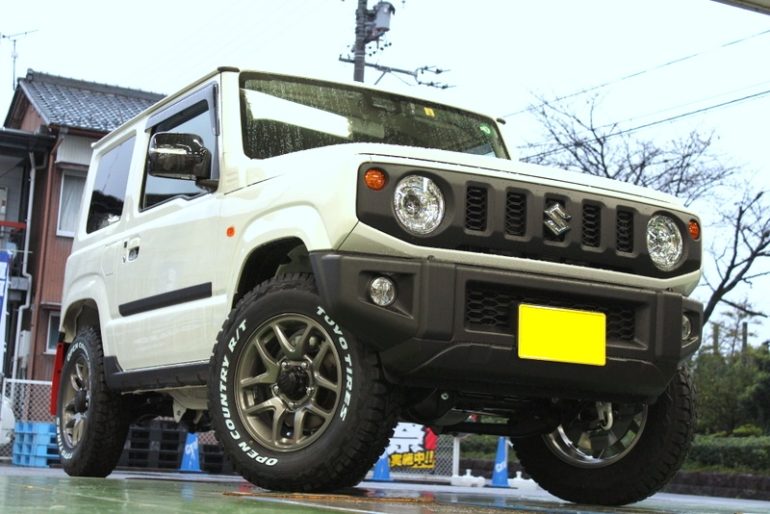 JB64ジムニーにホワイトレタータイヤならTOYOオープンカントリーRTが人気です!
