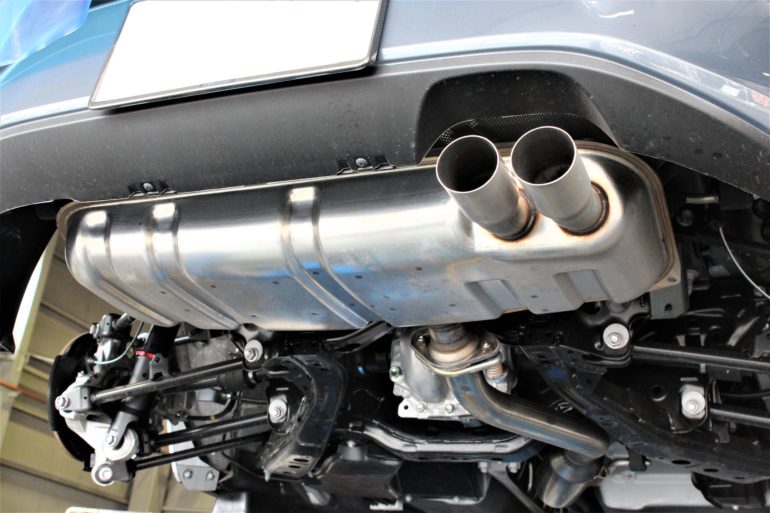こちらが装着前の純正片側2本出しマフラー。