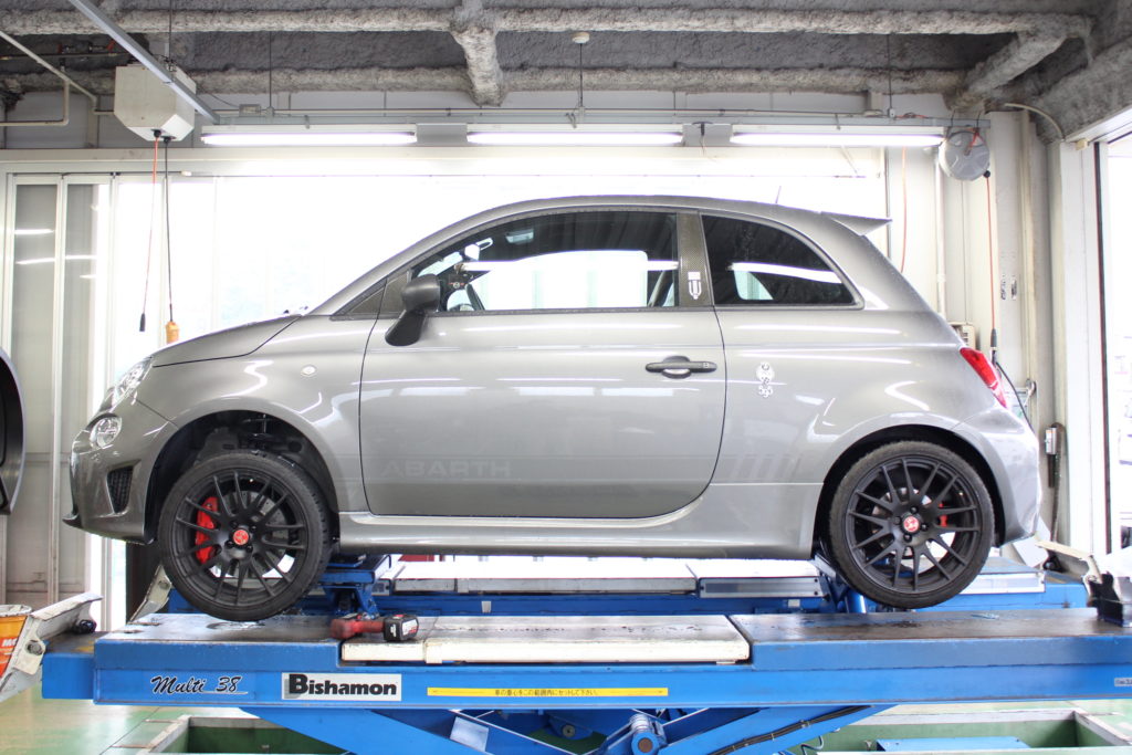 ユーロスタイルクラフトにて在庫していたラスト1台分をアバルト595へ装着いたします。