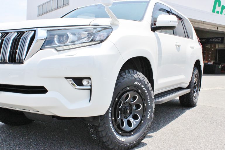 150プラド後期をエアジーマッシヴとホワイトレターでマッシヴフォルムへ。