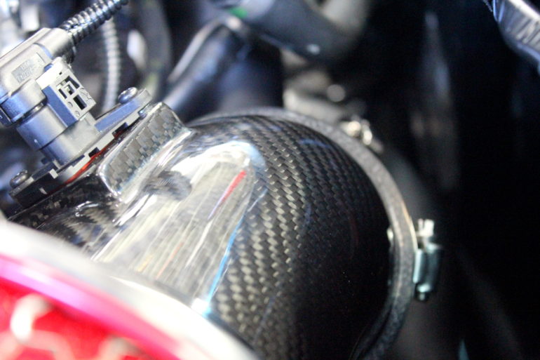 HKSドライカーボンレーシングサクションはむき出しタイプ。