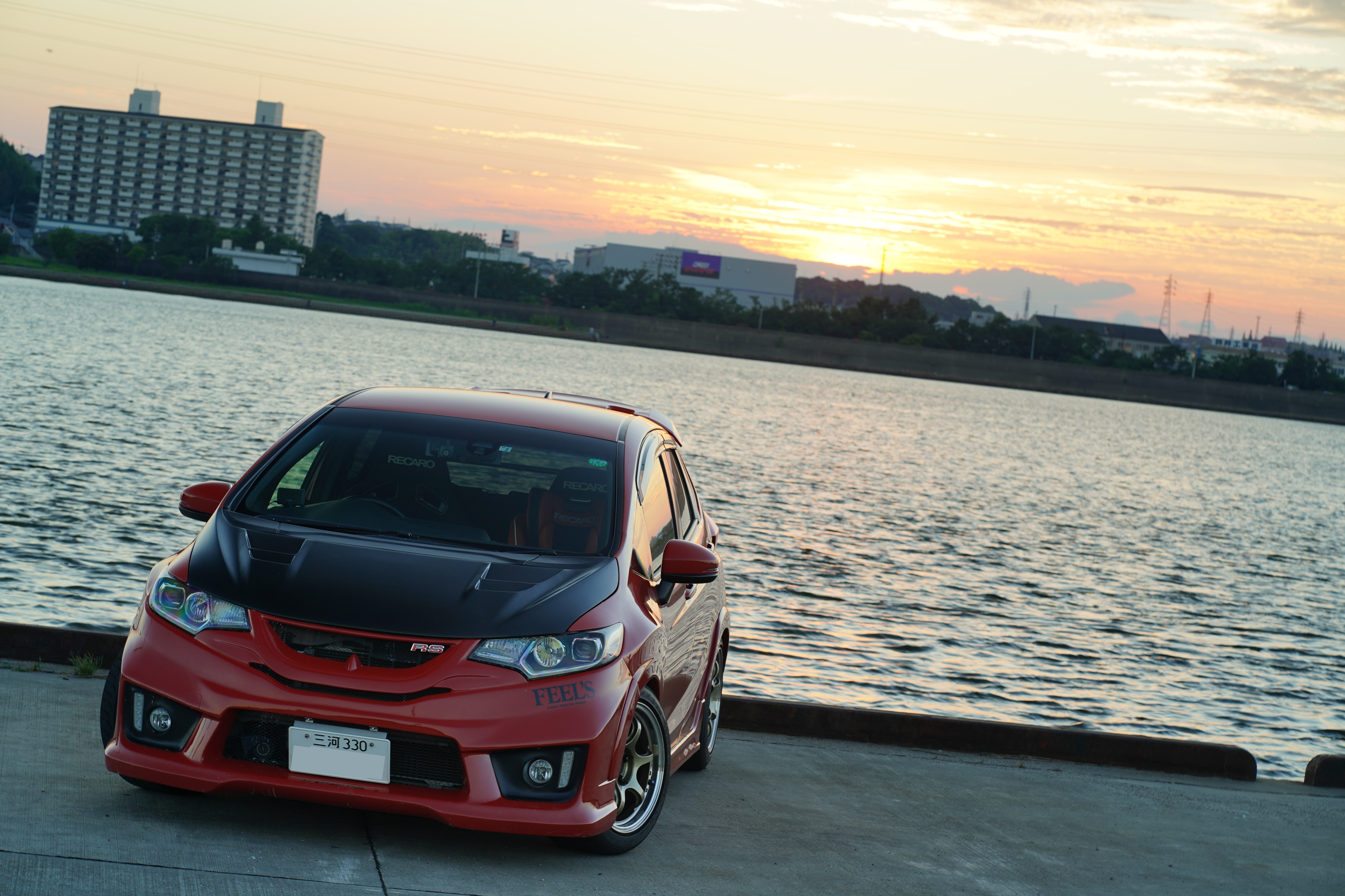 また、オレンジの車+夕陽+港のロケーションで撮られた
