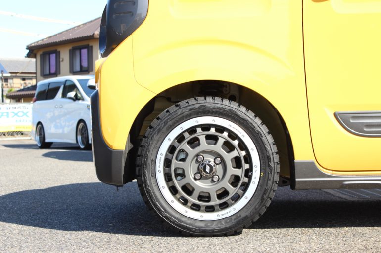 スペーシアギアにタイヤ外径を大きくしてブロックタイヤを装着しました^^