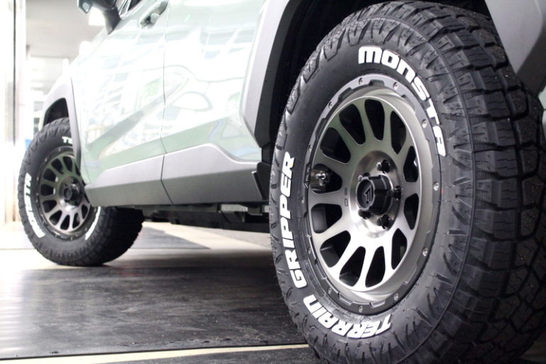 RAV4にこのサイズを装着できるのはモンスタタイヤならでは。