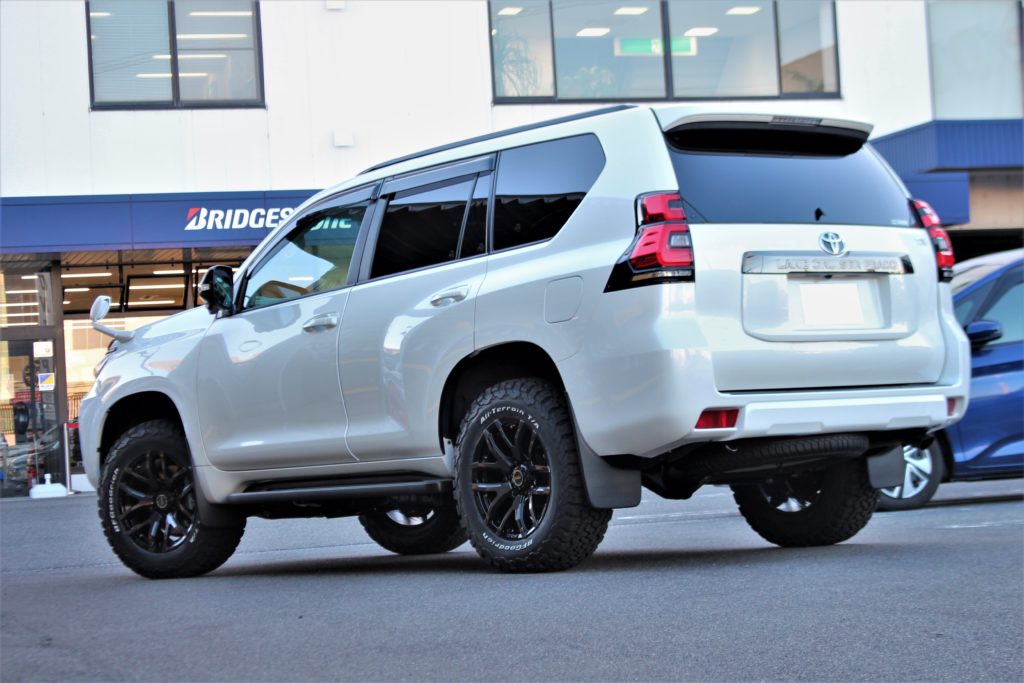 ■150系プラド ブラックエディションにRAYSデイトナFDX F6 18インチ!ホワイトレターでいこう。
