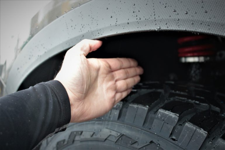 少しタイヤ外径が大きくなっているのでフェンダーとのクリアランスは大きく変化がございませんが