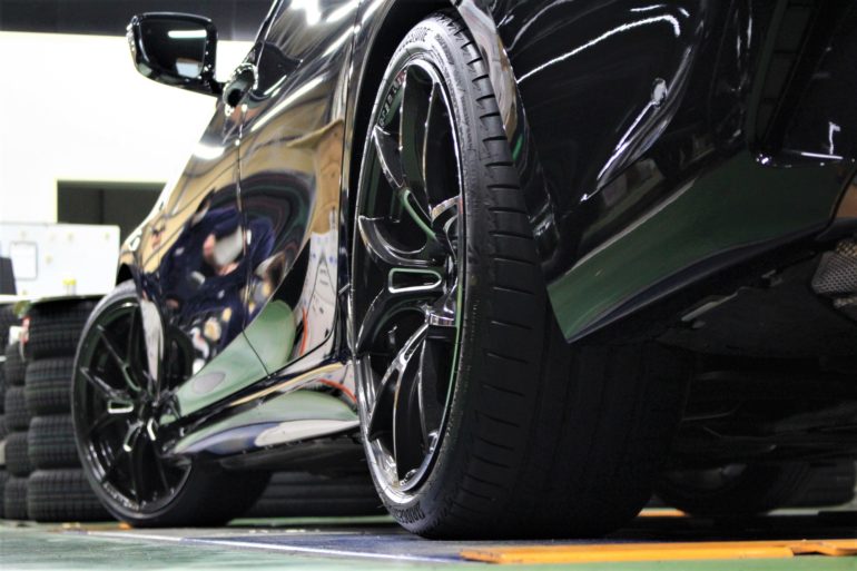 スプリングでのローダウンに、純正19インチが装着済の車両。
