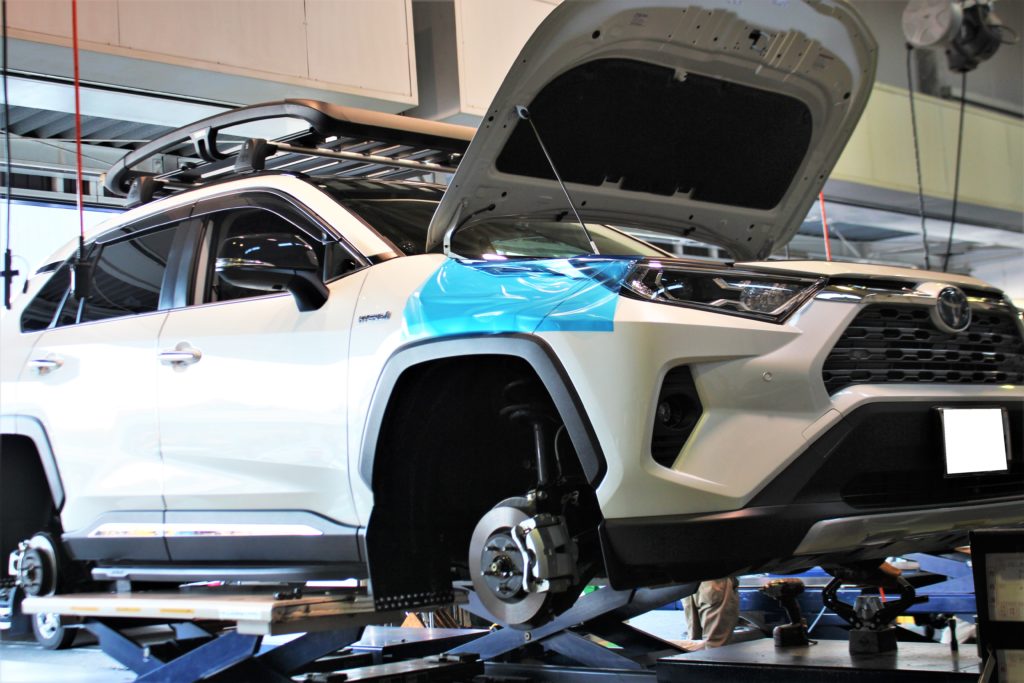 作業進行中なのはトヨタ RAV4 ハイブリッド。