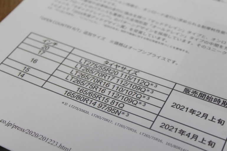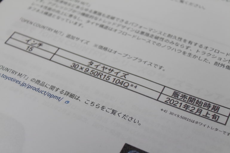 ■TOYOのオープンカントリーシリーズから新サイズ追加が発表!!