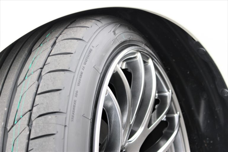 そして走行中の干渉を防ぐ意味もになうタイヤの引っ張り仕様。