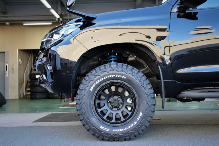 オールテレーンタイヤも相まって一気にワイルド感溢れるプラドに変身です!
