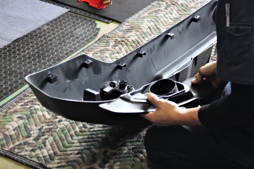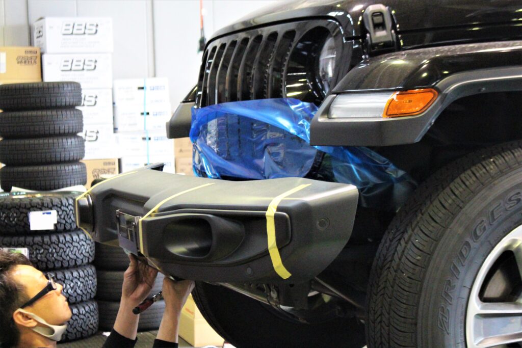 純正バンパーを取外し取付けていきます。