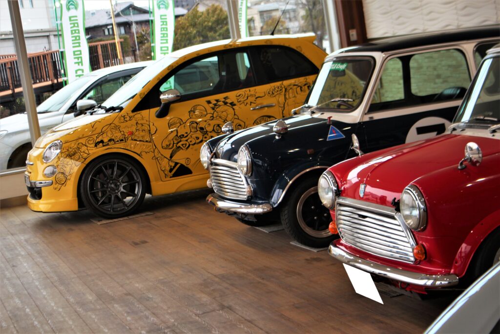 ローバーミニ2台とフィアット500の搬入が完了デス!