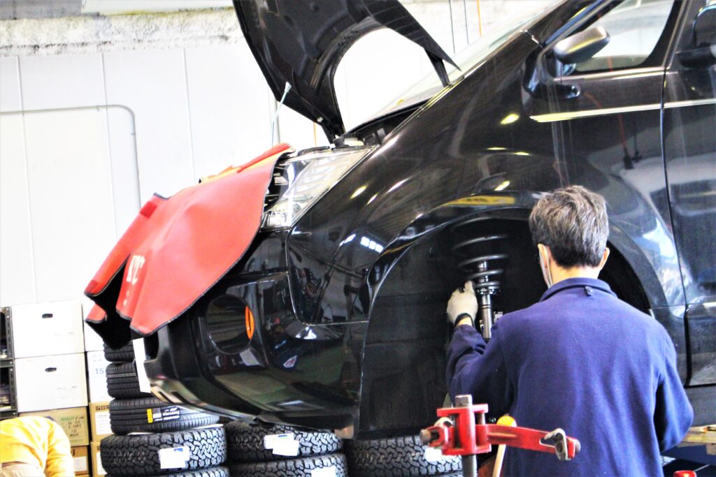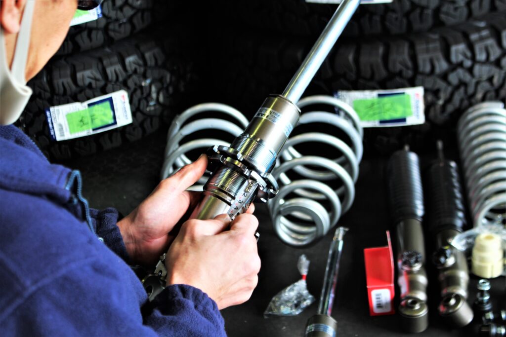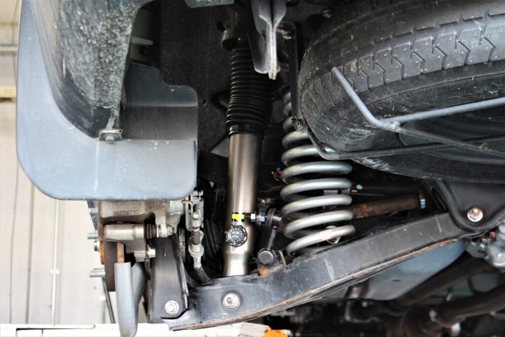 リア側の減衰力調整機構は14段。車両下部からのアクセスもしやすいので、