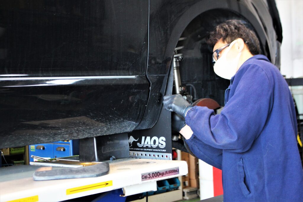 消耗品の交換は同時に交換するのが一番お得! こんにちは!URBAN OFF CRAFT浜松店 です^^ 本日のご紹介しますお車はコチラになります(∩´∀`)∩ 三菱:デリカD-5 MC後 本日はJAOSのリフトアップキッドを使用してお車をカッコ良く!そして乗りやすく! カスタムして行きたいと思います★ 交換に使用するのはJAOS BATTLEZ VFCA フロント リア共に減衰力の調整機能を搭載 フロントは車高調整式のフルキットとなります。 好みの硬さ、高さにに調整できる事からデリカオーナー様に 非常に人気の商品となっております。 今回は純正のパーツを流用してお取り付けを進めて行きましたが 少し気になる点が御座いましたのでご紹介して行きます。 上の写真はフロントのアッパーマウントになりますがエメラルドグリーンの液体が付着しているのが分かりますか? これはベアリングのグリスなんですが、砂浜に入ったりされる方は注意して下さい。 タイヤから跳ね上げられる砂がベアリングに詰まり動きの邪魔を強います 動きに負荷かかり耐えられなくなるとグリスが飛び出てしまいます。 ハンドルの回転に違和感やスムーズに動かなくなってきたり、音が出たりする方はココをチェックしてみて下さい。 今回は純正を流用すると言う事でしたので、一旦ベアリングをバラシ清掃をさせて頂きサイドグリスアップして 応急処置をさせて頂きました。コレで大分動きがスムーズに戻りました。 スタビリンクは塩水などの影響でココまで錆びてしまっています。 フロント側は純正を流用すのですが、ここまで錆びてしまうとナットを締め込む際 噛みこんでしまうので今回は錆びを綺麗に落とし再度タップを切り直して再利用しました。 ボールジョイント部分は比較的スムーズに動いていたので問題は無いかと思いますが。 リフレッシュのタイミングで有れば交換しておいて良いですね(´∀`*)ウフフ 交換するショックのフロント部分は調整式になっているので寸法を決めて仮組して行きます。 装着して左右の差やリフトアップ量に問題がなければ本締めを行い完成です。 お車によって積んでいる物で重量が異なるので、全て同じ条件では無いので 当店では都度お車に合わせてセットして行きます。 フロントには車高が上がった事によるキャンバーの補正が出来るようキャンバーボルトを入れて行きます。 コレを入れるのと入れないんでは結構走りに違いが出るので同時に入れて頂く事をお勧めします★ 【before】 ノーマルの状態では少し前下がり気味なのが確認できますね。 こういったお車の特徴でも有るのですが、気になる方は結構気になってしまいますよね・・・ 【after】 調整後は綺麗に水平を維持できています(´∀`*)ウフフ 今回は前側を基準値よりも少し多めに上げて設定しました。 最初はラックが装着されていたのでそのままでも良いかな?何て思って組んでみましたが【ラックの重心が後ろ側に寄っていた為】 ですがフロントにも良い感じに重量が分散されていたので少し前下がりになってしまったので 少し調整を入れてフロントを少し上げました。 【before】 アライメントの数字はフロント側がかなり崩れて強いまっていますね。 特にトゥの部分が大きくズレています。これは本来ただ上げただけならココまでズレないんですが キャンバーボルトでキャンバーを内側に補正を入れた事でここまでズレてしまいます。 本来ナチュラルな状態ですとキャンバーは外側に起きてしまうので 内側に寝かせる動きを入れる事で本来の倍以上の動きを追加しいる事になります 【after】 施工後はしっかりと綺麗に整いました(´∀`*)ウフフ ちょっとしたパーツを追加するだけでかなり綺麗に補正できるので気になっている方は是非 ご検討ください(*´▽`*) リア側もアーム交換などで補正が出来ると尚良いんですが当店ではアームの交換は行えませんので そんな方はリアメンバーダウンキットなどを入れて補正してあげる事でリアキャンバーは 良い感じに補正が出来ます。 リフトアップする事で見た目の変化もそうですが乗り味なんかも大きく変化します。 使用するパーツでお困りな方はお気軽にご相談ください。 只今リフトアップキャンペーンと金利無料キャンペーンを組み合わせる事で お得に購入も出来ますのでこの機会に是非ご検討ください★ ※金利無料キャンペーンは使用できる条件が有りますので気になる方は コチラもチェックしてみて下さい★ 開催中のキャンペーン 【 URBAN OFF CRAFT浜松店 Instagram 】 浜松店で取り付けした色々なお車が掲載されています(*´▽`*) 是非こちらもチェックしてみて下さい★ 浜松店/URBAN OFF CRAFT 浜松店 住所〒435-0016 静岡県浜松市東区和田町844 電話番号053-462-7611 営業時間【平日・土曜】10:30~19:30 【日曜・祝日】10:00~18:00 作業受付時間【平日・土曜】18:30まで、【日曜・祝日】17:00まで