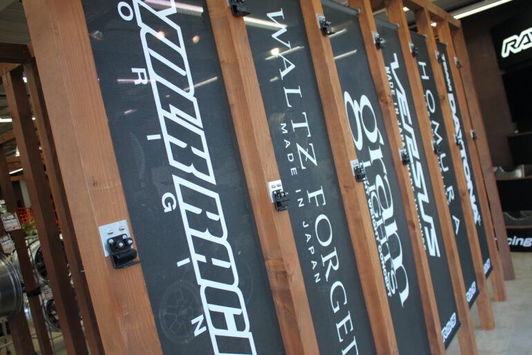奥の3段展示には、さらにRAYSブランド、MADE IN JAPANのロゴで格好良くなっております!!