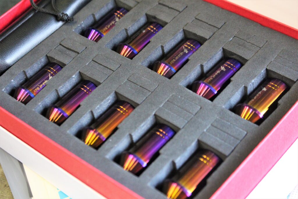 専用のデザインスタジオにて2D・3D・CADデザインを行い、ニッケル超合金加工のみを行う専用工場で製造されるチタンナット。