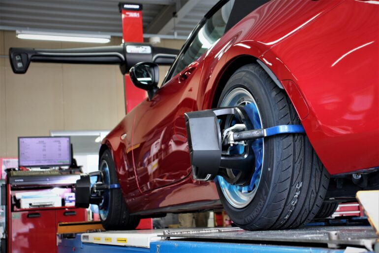 キャンバー・キャスター・トウとフルで調整が可能なロードスターだからこそ成せる技です